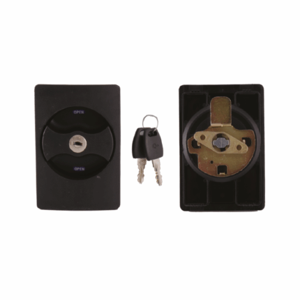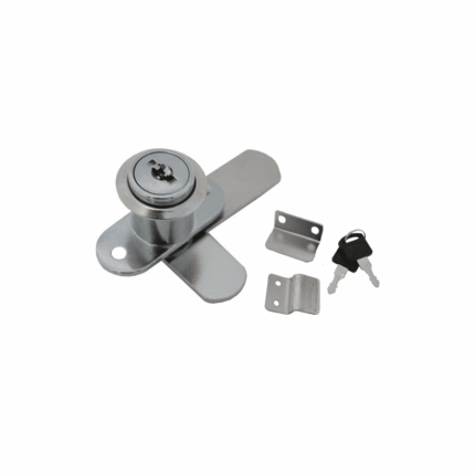 Cerradura para mueble metálico con indicador o pestillo (curvo o recto), diseñada específicamente para muebles metálicos como lockers o gabinetes