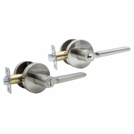 Cerradura de manija, para entrapa principal, recámara o baño, puede invertirse tanto izquierda como derecha.