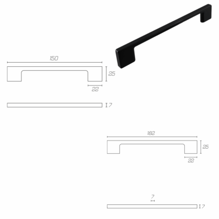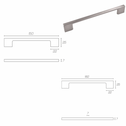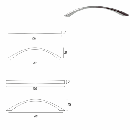 - Tamaño chico: Largo: 150mm | Altura: 25mm | CC: 128mm